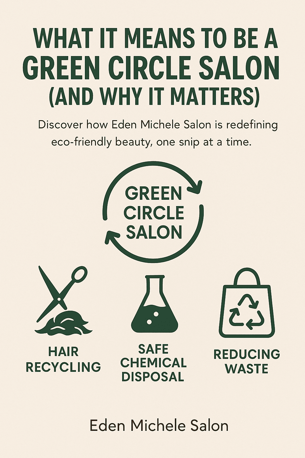 At Eden Michele Salon, we believe beauty should be bold, sustainable, and soulful. As a proud Green Circle Salon, we’ve made it our mission to transform everyday salon waste into powerful acts of environmental care. Your beauty journey should uplift you without leaving a heavy footprint behind.